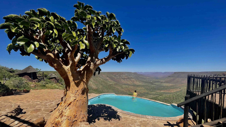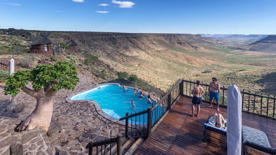 Die Grootberg Lodge ist das Flaggschiff des Journeys Namibia-Portfolios, die erste Unterkunft der mittleren Preisklasse, die vollständig im Besitz einer Schutzgemeinschaft ist und von Mitgliedern der ländlichen Gemeinschaft betrieben wird. Am Rand des Etendeka-Plateaus gelegen, werden Sie von den Ausblicken über das Klip River Tal begeistert sein, während Sie auf den Decks Getränke genießen oder im Pool schwimmen.